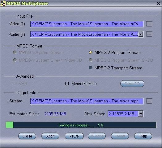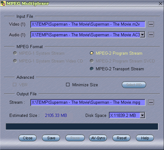 Step 2(a/b) - Under the "Input File" browse to the "Video (0)" using the "[....]" and select your Video ONLY track (MPV/M1V/M2V) and under the "Audio (0)" select your MP2 Audio file. Now select the type of "MPEG Format" you are creating.![]() ![]() |