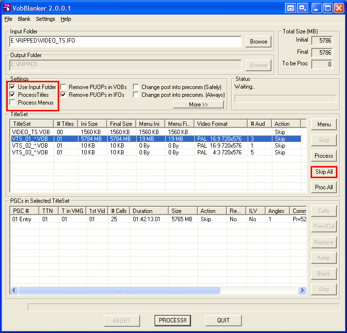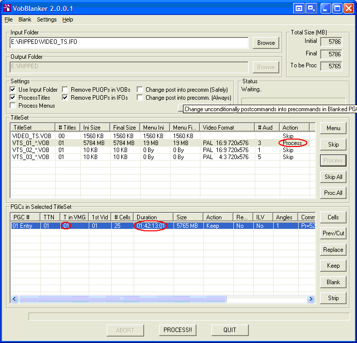 Now, simply click the PROCESS!! button down the bottom and go make coffee. In about 5 minutes or so, VobBlanker will have done its work and replaced the original title with your re-authored one. The menus will be intact.