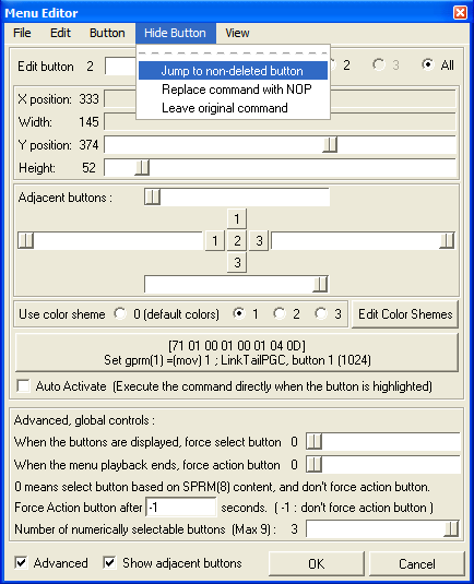 (c) Check you have the right button (button 2 in the "Edit button" box) and click Hide Button >> Jump to non-deleted button.