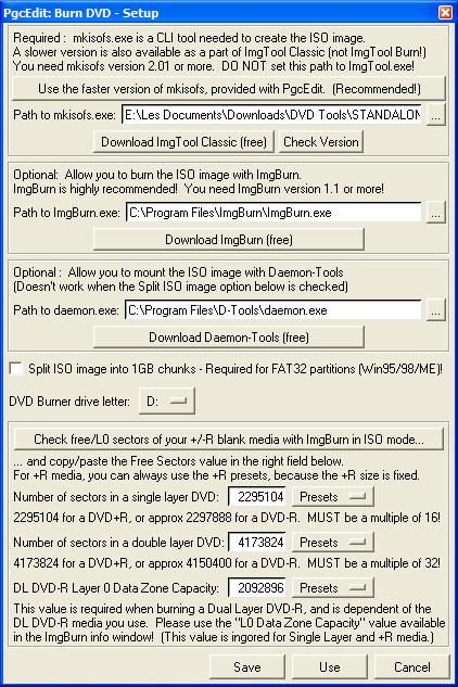 (iv)             Download ImgBurn by pressing the button. Install it. Let PgcEdit know where the ImgBurn.exe file is located on your hard drive after installation.