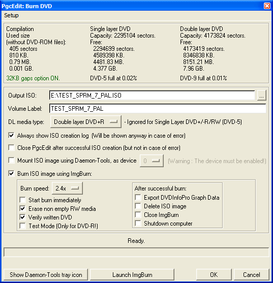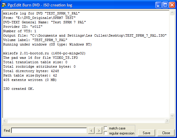 The ISO creation starts (it will take about 4 minutes for a single layer DVD, up to twice as long for a dual layer). Once finished, PgcEdit will display the following screen: