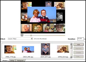 New visual effects - MemoriesOnTV includes some of the most visually elegant effects available in slideshow software. You will see your photos ripple into one another like raindrops from the sky; or clouds flying through them and fading them off. Most of the effects are customizable, giving you virtually an infinite number of effects.