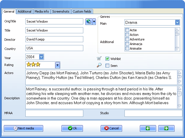 Amongst the features of All My Movies include the ability to easily import and export your collection data, search for detailed information about a movie, TV show, actor, director and everything else (again, all information obtained for you), print support, mobile device support, barcode/UPC support, support for disc carousel devices, still capturing and much much more ...