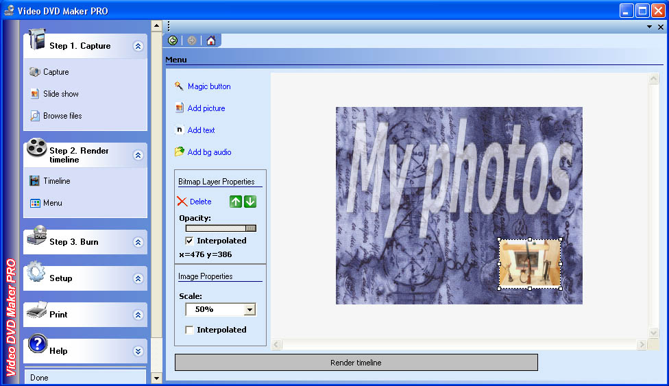 Video DVD Maker is a freeware authoring tool that allows home movie enthusiasts to create DVD disks in three clicks. You can capture video from TV tuners, web cameras, DVs and import most video formats, and burn an output onto a CD/DVD disk.