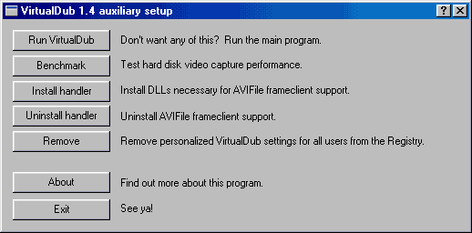 | Pre-Steps - Before you start with "VirtualDub", run the "AuxSetup"