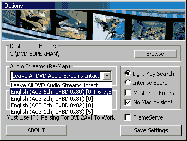 Step 2 - Press the "Options" button, select the pulldown from the "Audio Streams (Re-Map)" to select an Audio Track.