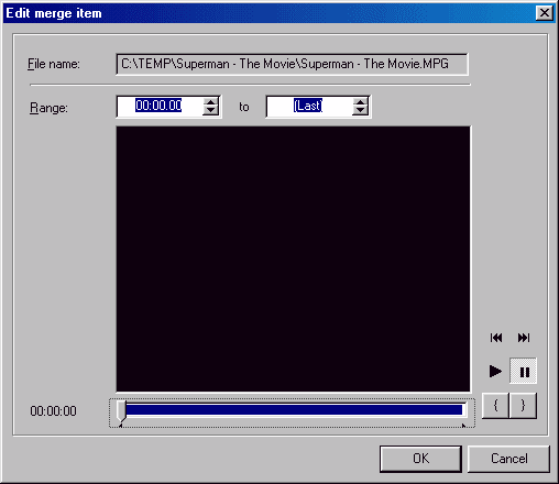Step 3b - Select the "Start offset" and "End offset " for the first part of the movie and press the "Ok" button. ![]() |