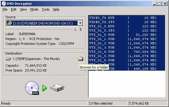 | Using - DVD Decrypter (File Mode) |