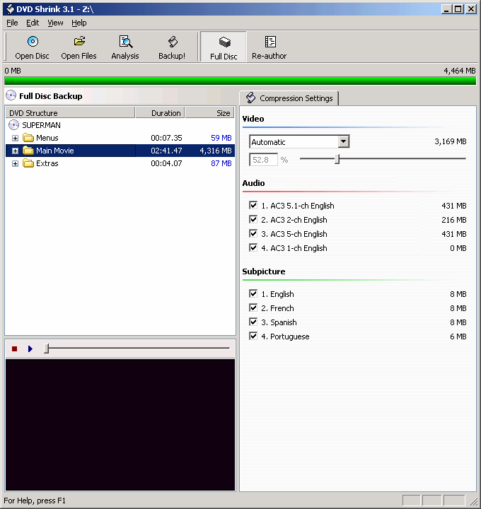 4a) DVD Shrink will perform an Analysis of your movie before the