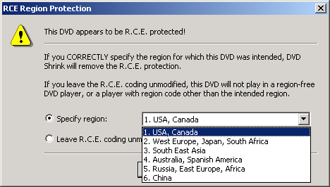 3a) If your DVD has RCE protection, select from the "Specify region" the correct region