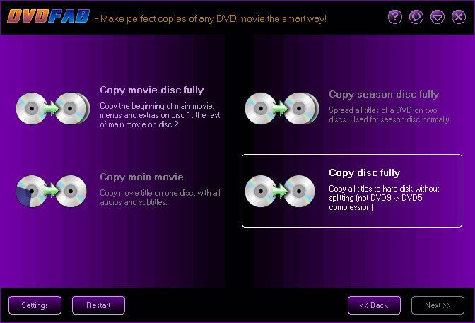 Now you can select either "Copy movie disc fully" which will split into