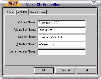 a Video CD or a Super VCD, drag the MPG file of the movie into the "Video CD Track".
