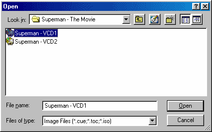 Step 2b - Select the Cue/Bin file you want to burn, and click the "Open" button (you can also double-click the file!)![]() |