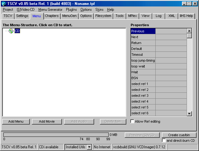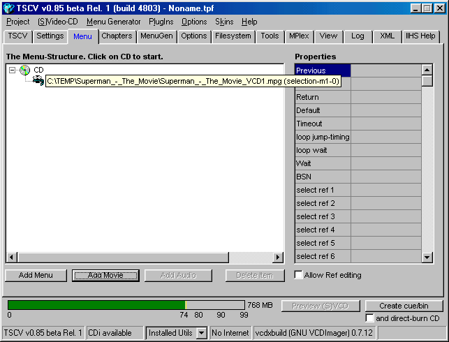 your specific movie, and follow this example below. (* NOTE: Please do not create blank spaces in the Cue/Bin name, as CDRDao may have a problem burning it later on. *)