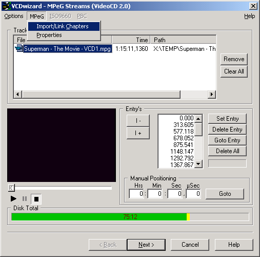 Step 2c - If Chapters were added currectly, they should be visible under the "Entry's" section and the bottom, if you are satisifed with the results, click on the "Next" button to continue. ![]() |
