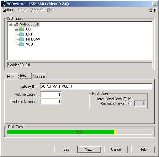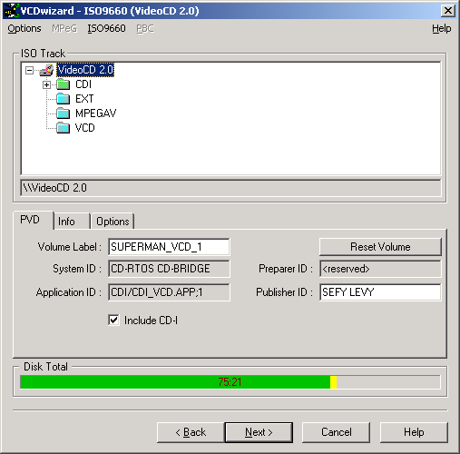 Step 3a - In the "PVD" settings you select the "Volume Label" of your movie, also select if you wish to add compatibility with a CD-I Player by selecting the "Include CD-I", and when you are done, press "Next" to continue.
