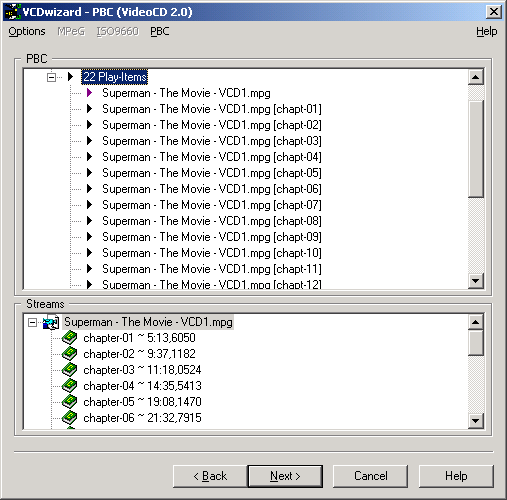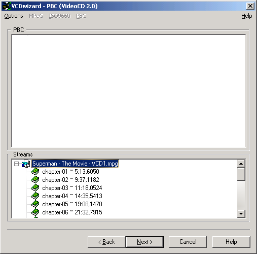 Step 4a - In the "PBC" is where we setup the Chapters, drag the file from under the "Streams" section, and all the Chapters you made earlier into the "PBC" section.