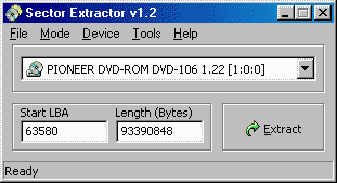Step 2a/2b - After you have selected the VOB file, the Start LBA and Length (bytes) will be filled out automaticly, and all you need to do is press the "Extract" button and choose a location to save the VOB.