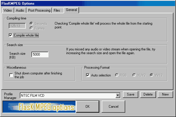 Project Options" (3a), this will bring up the "FlasK MPEG