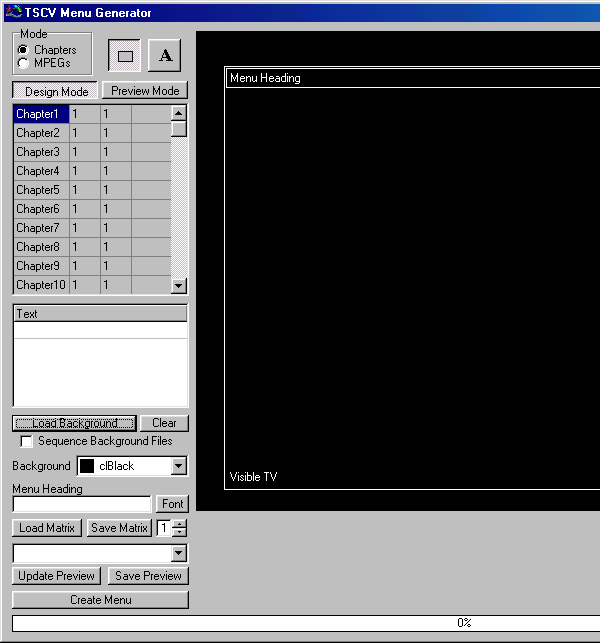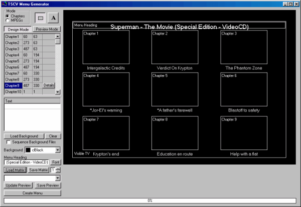 Step 4 - When you are done with all the Chapters it will look something like this, depending on the way you arranged the Chapters, it would be recommanded to "Save Matrix", so you don't have to redo the whole thing again if something goes wrong (the image below was resized to fit 640x480 resolutions).