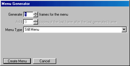Step 5a - When you are done, press the "Create Menu " button, here you can have two choices, a "Still-Menu" or a " Motion-Menu", if you are using just 1 frame for the menu, it will create a "Still-Menu", if you want to create a "Motion-Menu ", skip to Step 3j, if not, then just press the "Create Menu " button, and this will open your TMPGEnc and create an MPV file.
