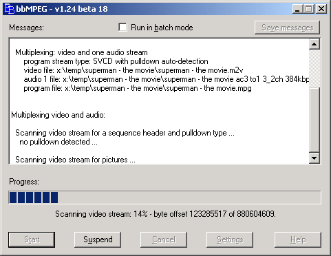 Step 3 - Click on "Start" to being Multiplexing your Movie.![]() |