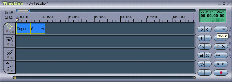 Step 2(a/b/c) - Drag your movie from the "Project" to the "TimeLine" section over the "Media" area. Using the "Mark in" and "Mark out"