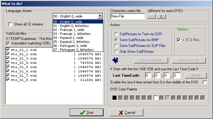 program can extract Subtitles/Subpictures from a DVD Movie into various