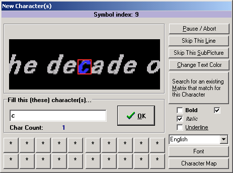 Step 3(a/b/c/d) - Once the program has finished creating the BMP's, click on "Output Format" and select "Set Output Format" and make sure to setit to the correct format under the "Graphical Formats", here i've selected "I-Author (*.txt)". Now click "Convert to this Format" then click on "File" and select "Save As" and type a filename and click on "Save" to create your subtitles definition txt file.![]() ![]() ![]() ![]() |