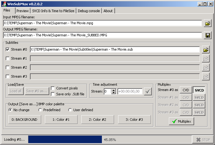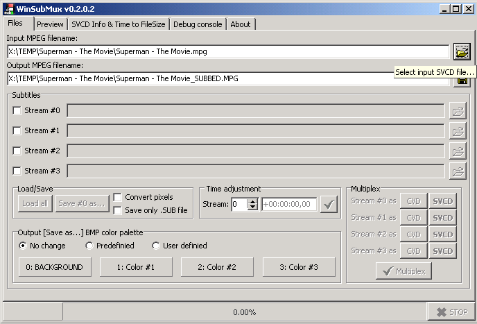 Step 1(a/b) - Insert your "Input MPEG filename" and select a new "Output MPEG filename" which will be multiplexed with the Subtitles. Under the "Subtitles" category, enable the "Stream" for your subtitle file. You can insert upto 4 subtitle streams. Now click on the "Load all" to open all the required files into the program.![]() ![]() |