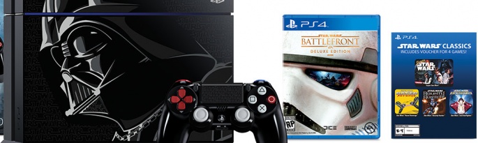 Canadians do get a bigger discount on some of the limited edition sets, with the Limited Edition Star Wars Battlefront PS4 bundle (arriving Nov 17) dropping from $549.99 CAD to $469.99 CAD.