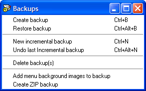 These functions create and restore backups of the IFO files and button information in case things turn sour! See also the backup options on the Input/Output Options menu. The Incremental backup renames the original PgcEdit_backup folder to one containing the date and time it was last modified and saves your IFOs and button information in a newly created PgcEdit_backup folder. This is very useful for progressive saving of your work.