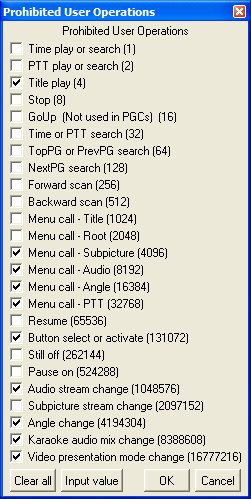 When selected, each of these options places a restriction on specific operations during the playback of the PGC. For example, in the diagram above, you may not:
