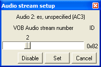 You may add a stream by clicking on one of the previously unused streams (marked “none”). Of course, adding a stream that is non-existent in the VOB is meaningless.