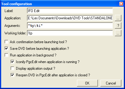Configure Tools: Configuration of the Tools menu. As an example, here’s how to configure IfoEdit.